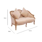 The French Bro Two Seater Seating is a stylish and elegant seating option, perfect for event rental in Dubai/UAE. It features a sleek wooden frame design with curved armrests and detailed stitching on the cushions, providing both comfort and style. Its classic yet unique look adds sophistication to any event, making it ideal for weddings, corporate functions, and more.