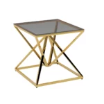 The Topaz Square Coffee Table is a stylish addition to any living room. With a unique frame design in a striking topaz color, this table is sure to catch the eye of your guests. The glass top adds a touch of elegance and allows the frame to be fully appreciated. Perfect for events or for everyday use in your home. Available for event rental in Dubai and the UAE.